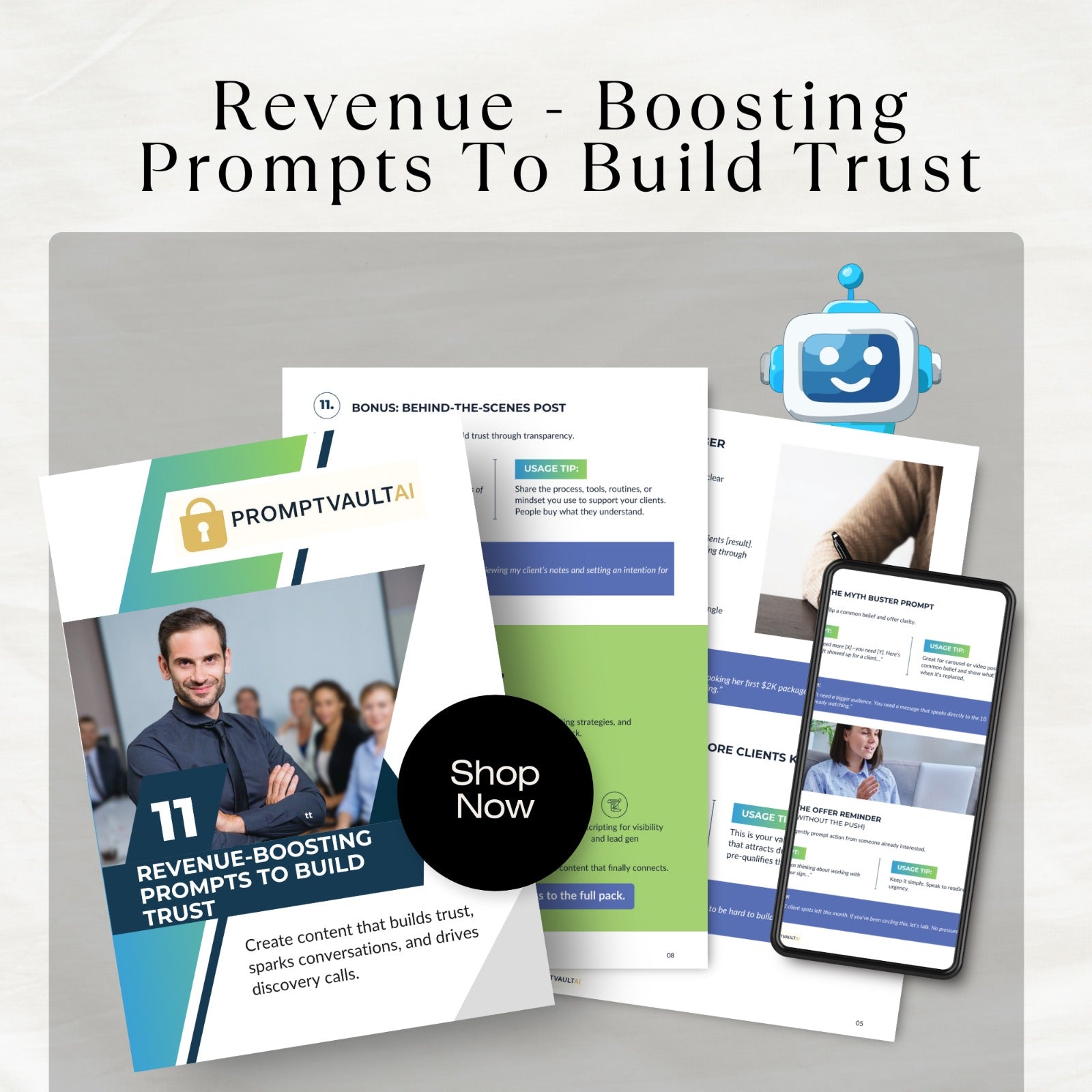 Turn conversations into clients with ease. Inside you’ll get 20+ ready-to-use prompts designed to build trust, spark natural discovery calls, and help you show up with confidence without ever sounding pushy or “salesy.”